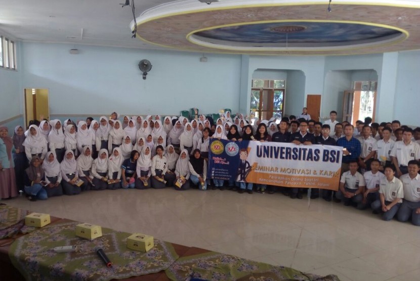 REPUBLIKA.CO.ID, BANDUNG — Universitas BSI mendukung SMKN 1 Cimahi menggelar seminar motivasi bagi siswa tingkat akhir dalam menghadapi ujian nasional dan dunia kerja. Kegiatan ini sukses dilaksanakan oleh Bagian Marketing Universitas BSI Bandung dengan SMKN 1 Cimahi bertempat di aula SMKN 1 Cimahi, Selasa (12/17).