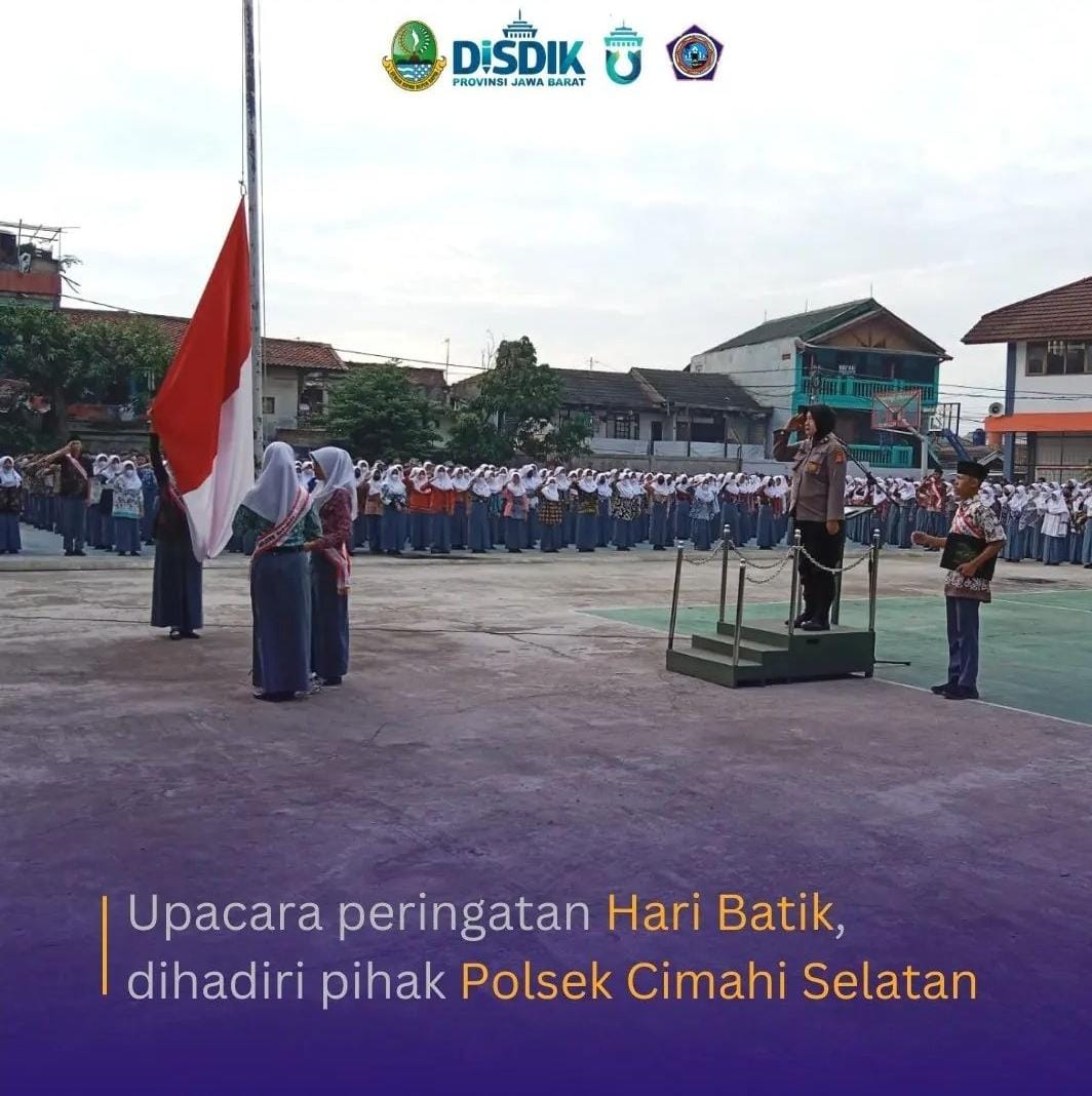 Dalam rangka peringatan Hari Batik Nasional, seluruh petugas dan peserta upacara hari Senin (03/10/2022) serempak menggunakan pakaian Batik. Bertambah spesial pula kesediannya pihak Kepolisian Sektor (Polsek) Cimahi Selatan sebagai pembina upacara yaitu Iptu Neneng yang mewakili Kapolsek Cimahi Selatan.