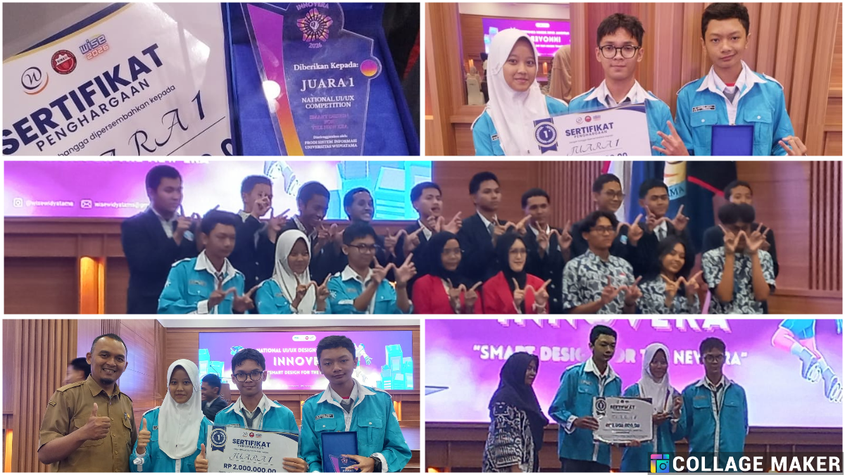Prestasi membanggakan kembali ditorehkan oleh siswa SMK Negeri 1 Cimahi. Tim Vibe Designer berhasil meraih Juara 1 National UI/UX Design Competition pada ajang INNOVERA 2026 yang diselenggarakan di Universitas Widyatama, dengan mengusung tema “Smart Design for The New Era.”